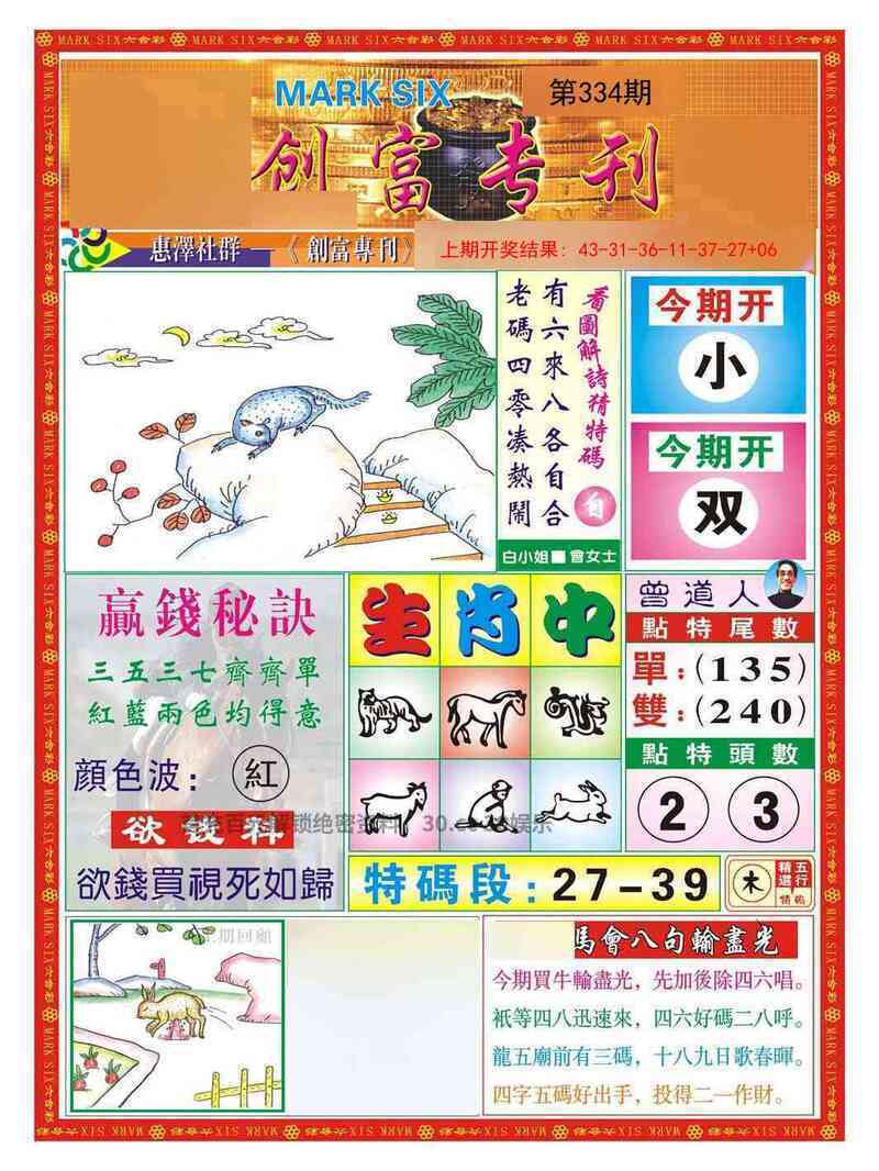 330期:赌王独合合字】开:马36准
