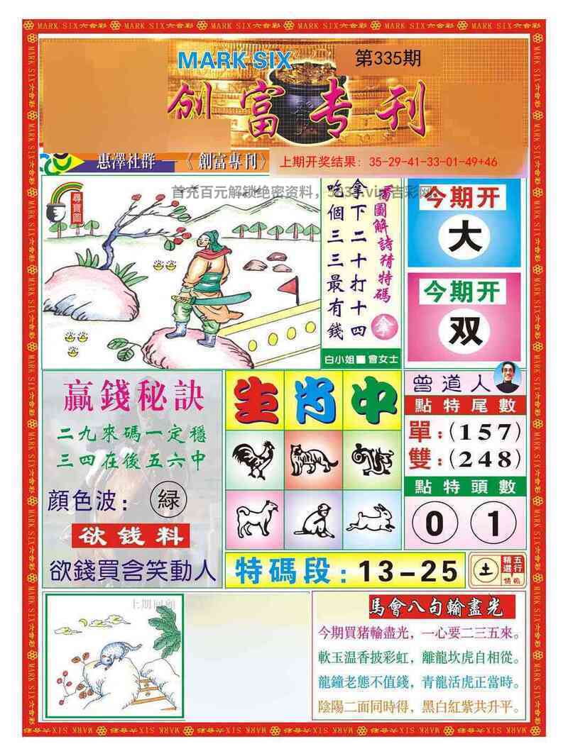 334期:绝杀二肖【龙马】开猴46准