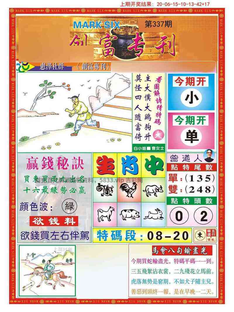 337期:绝杀二肖【猴狗】开鸡09准