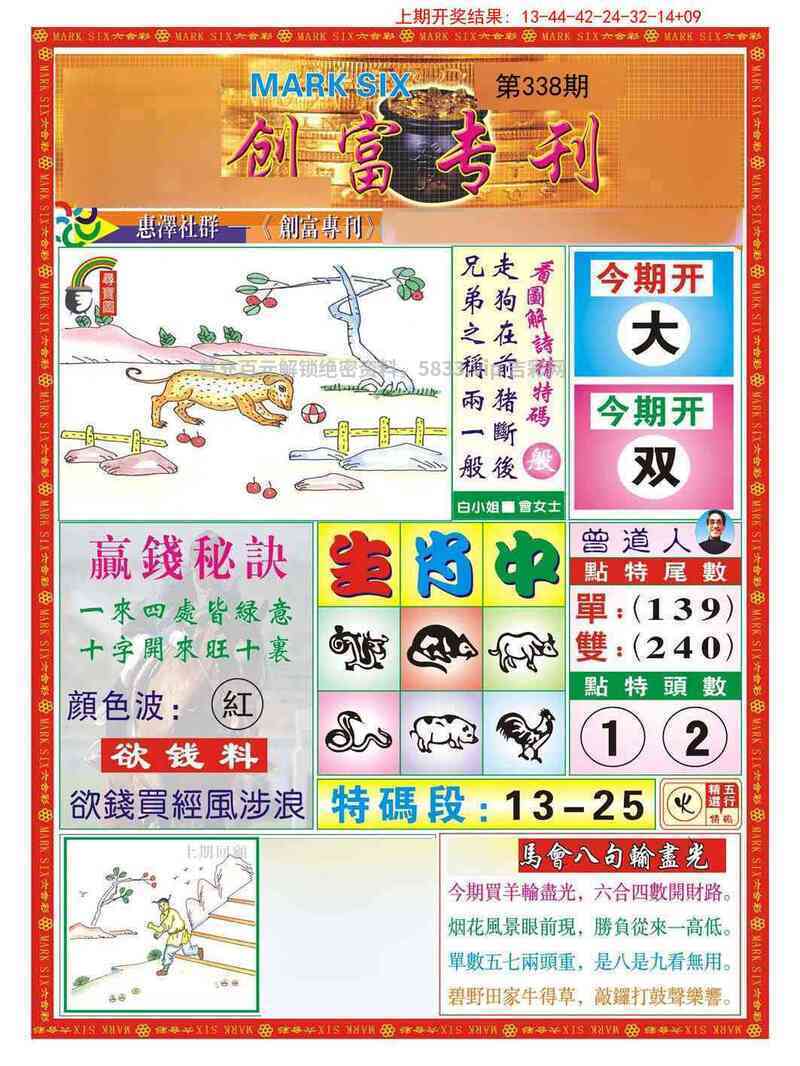 319期:绝杀二肖【猪马】开鸡45准